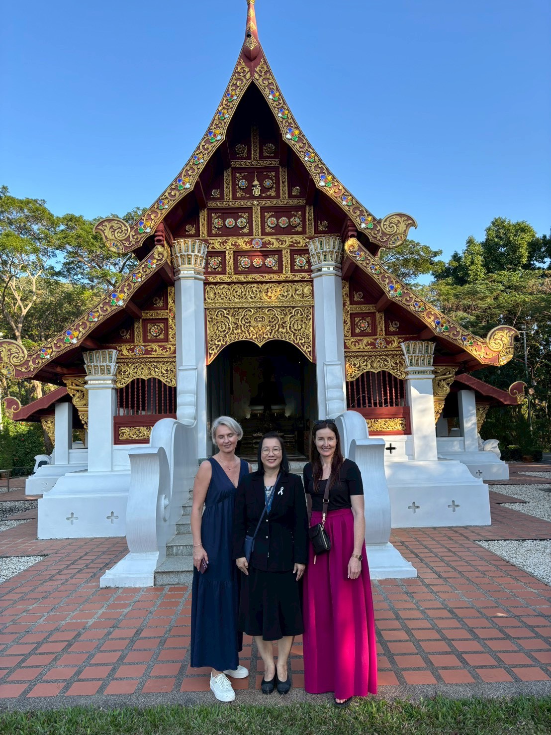 To provide a comprehensive view of our academic ecosystem, the visit included extensive tours of the Cosmetic Science Laboratory, the MFU Cosmetic Pilot Plant, and the Cosmetic Maker Space. The delegation also explored the Beauty Technology Makeup and Hair Salon Laboratory to witness our practical training facilities firsthand. Beyond the labs, the visit was enriched with cultural experiences at the MFU Memorial Hall, the Sirindhorn Chinese Language and Culture Center, the MFU Temple, the Botanical Gardens, and the MFU Dam, concluding with a welcoming dinner at Wanasom Restaurant. This visit serves as the foundation for a long-term partnership, which will soon include a reciprocal visit from our own academic staff and students to KVK in Lithuania, marking the beginning of a vibrant international collaboration.