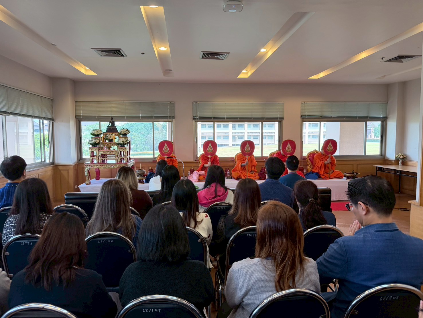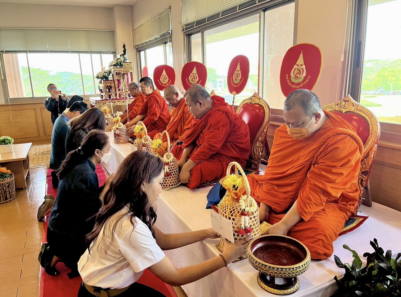 วันอังคารที่ 29 มกราคม 2569 สำนักวิชาวิทยาศาสตร์เครื่องสำอาง ได้กำหนดจัดพิธีทำบุญสำนักวิชาวิทยาศาสตร์เครื่องสำอาง ประจำปี 2569 เนื่องในโอกาสครบรอบ 21 ปี แห่งการสถาปนาสำนักวิชา โดยได้นิมนต์พระสงฆ์ จำนวน 5 รูป เพื่อเจริญพระพุทธมนต์และถวายเครื่องไทยธรรม เพื่อความเป็นสิริมงคลแก่คณาจารย์ พนักงาน นักศึกษา โดยมีผู้ถวายเครื่องไทยธรรมและปัจจัยแด่พระสงฆ์ จำนวน 5 ท่าน ได้แก่